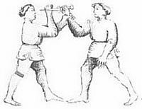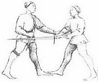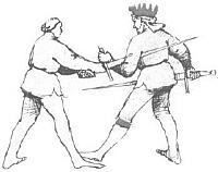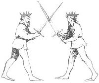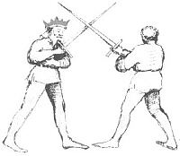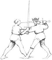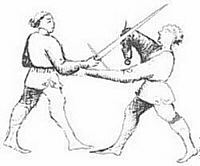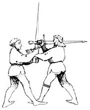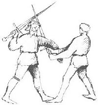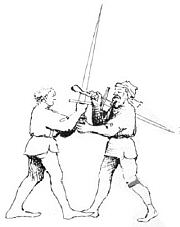 Our stereotype of chivalry as fair play is a creation of Victorian romantics - the idea of giving up a battlefield advantage would seem foolhardy to the medieval swordsman. Given the emphasis on disarming techniques, one might easily find himself with only a dagger, facing a foe armed with the Spadone.