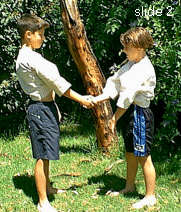 hold of the strings of the opponent’s jacket, swinging him right off his