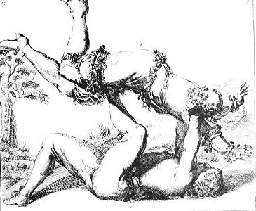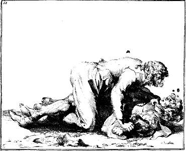 K grips the throat of L, as in the previous plate. L again joins both hands,