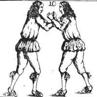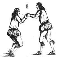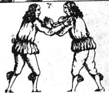 When you can get your fingers between those of Adversarii, so press his hands back, then he must sink to his knee, which N° 8 shows, or turn his fingers outwards, so will he sprain them.