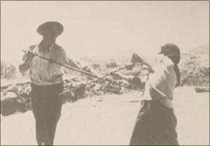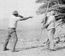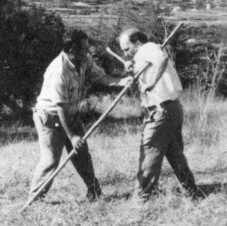 feet. Next, they stepped down and fenced with the staves, each one trying