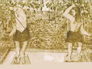 A Spanish engineer named Leonardo Torriani wrote a history of the Canary Islands in 1590, and included a valuable record of early Juego del Palo, accompanied by an illustration of two Guanche warriors performing a type of ritual combat with short staves in a small arena.