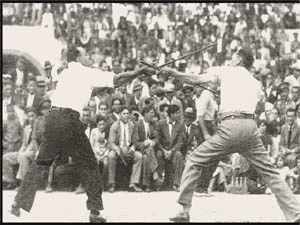 There are also many records of recreational contests of Juego del Palo at fiestas (celebrations), such as weddings and the religious Festival of Benesmen.