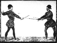 Lauso, stopped in outside guard, with the dagger against the sword of