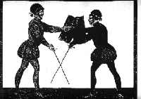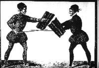 abbattimento con una spada e targa, et nel punto di menar le mani si