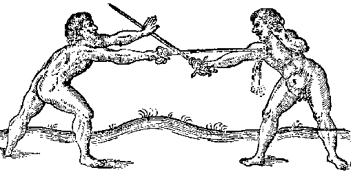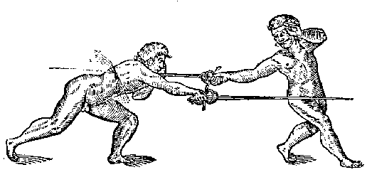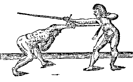 The Prime is only to be thrusted at the outside of thine adversary's Rapier over his right arm, and is never to be used within, and is the weakest of all the guards.